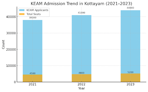 Here is the graph illustrating the KEAM Admission Trend in Kottayam (2021–2023).