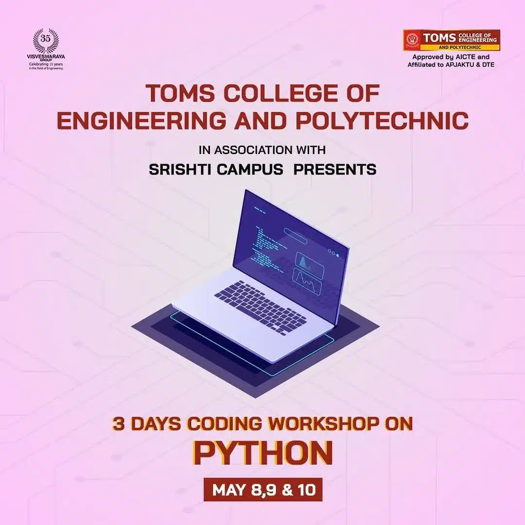 A three-day workshop on PYTHON is being conducted on May 8, 9, 10 under the auspices of Tom's College and Srishti Campus..All are welcome...